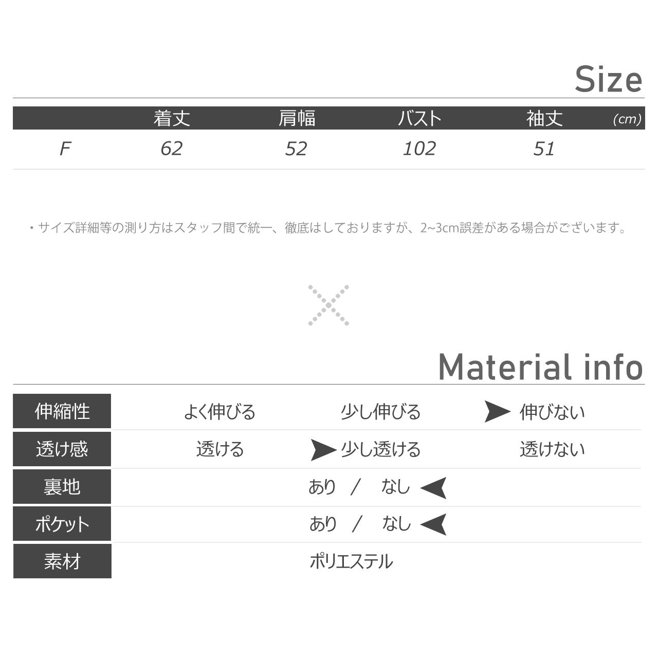 総丈:62/肩幅:52/バスト:102/袖丈:51 (cm)