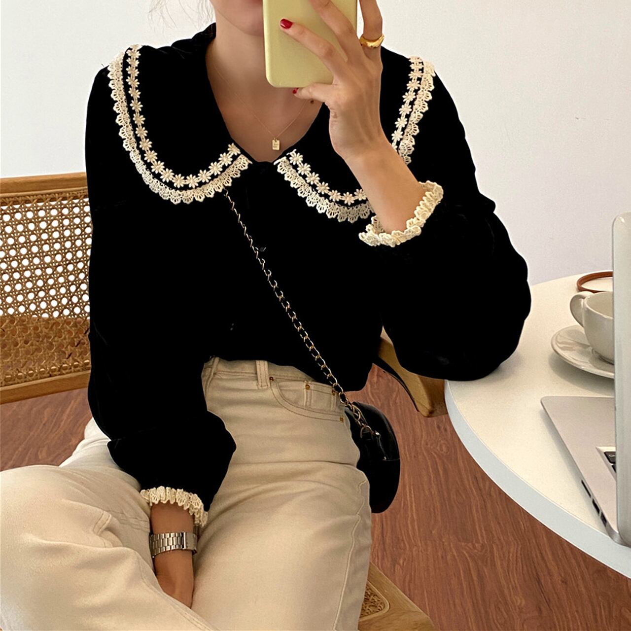 【REGIT】BLACK VELOUR COLLAR T-SHIRT 韓国服 トップス ベロア 女子力 フェミニン 10代 20代 プチプラ 着回し 着映え 春 ラウンド襟 ネット通販