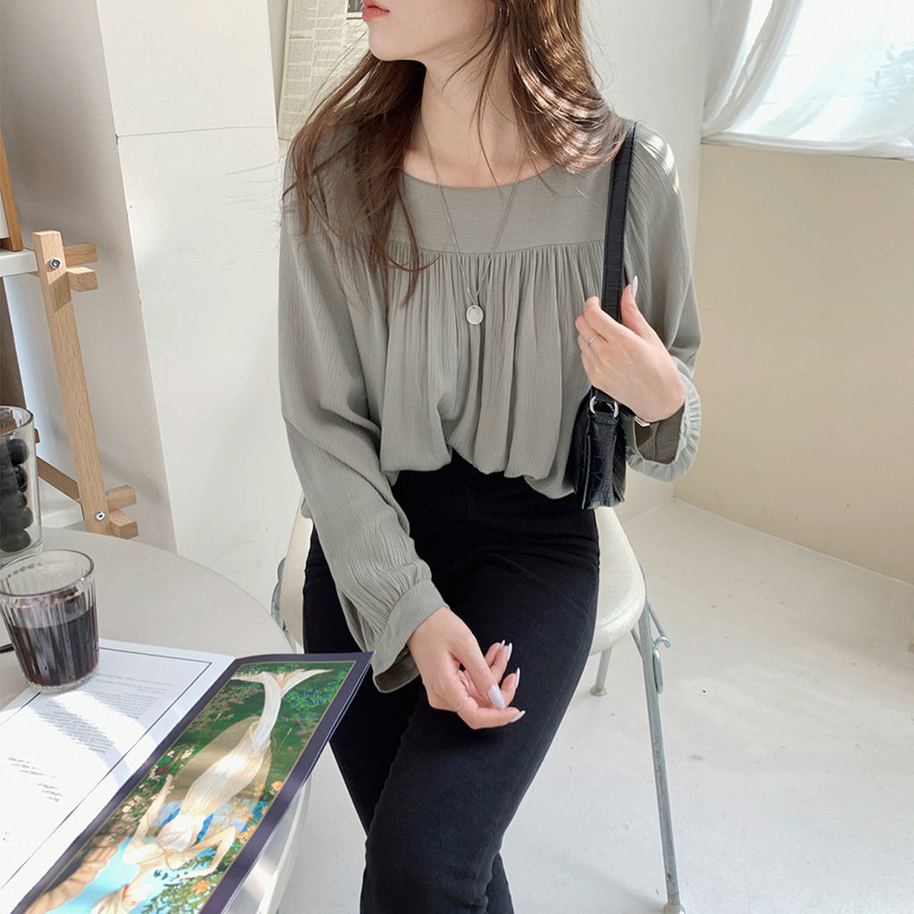 【REGIT】SQUARE NECK WRINKLE CHIFFON BLOUSE