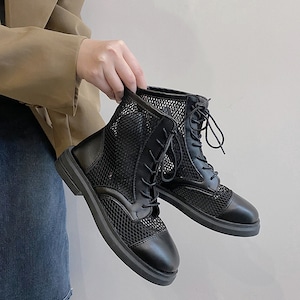 【REGIT】MESH MENNISH BOOTS-IVORY 韓国 靴 シューズ ブーツ メンズライク ミリタリー メッシュ 夏 カジュアル 10代 20代 プチプラ 映える 透け感 ネット通販