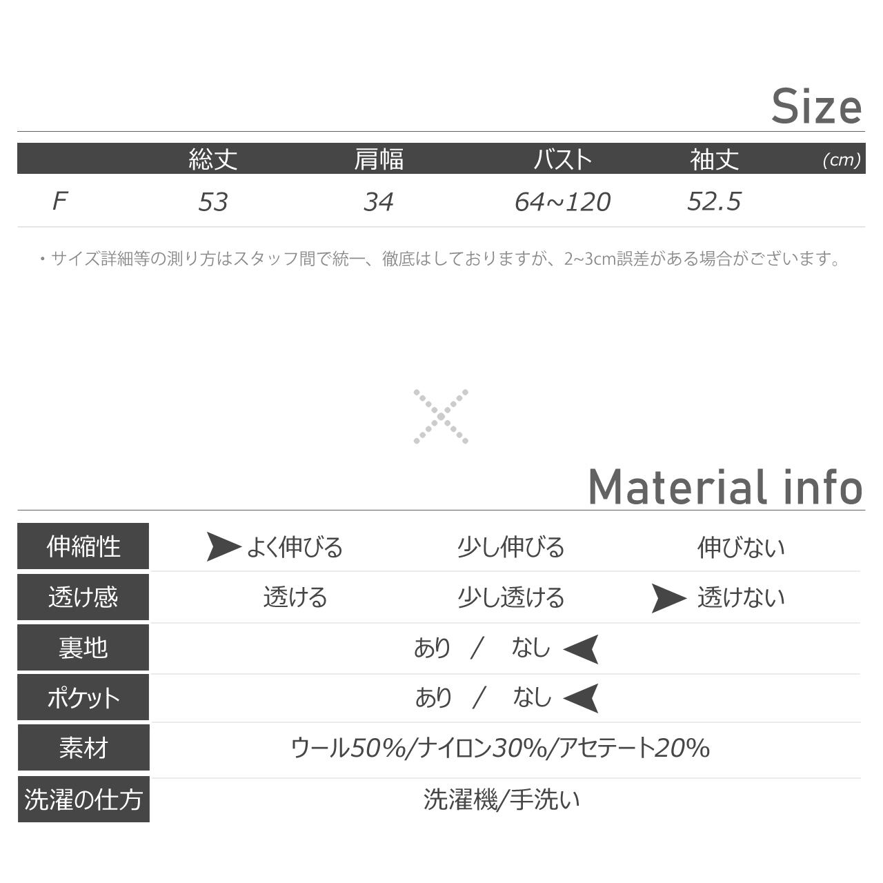 総丈:53/肩幅:34/バスト:64~120/袖丈:52.5 (cm)