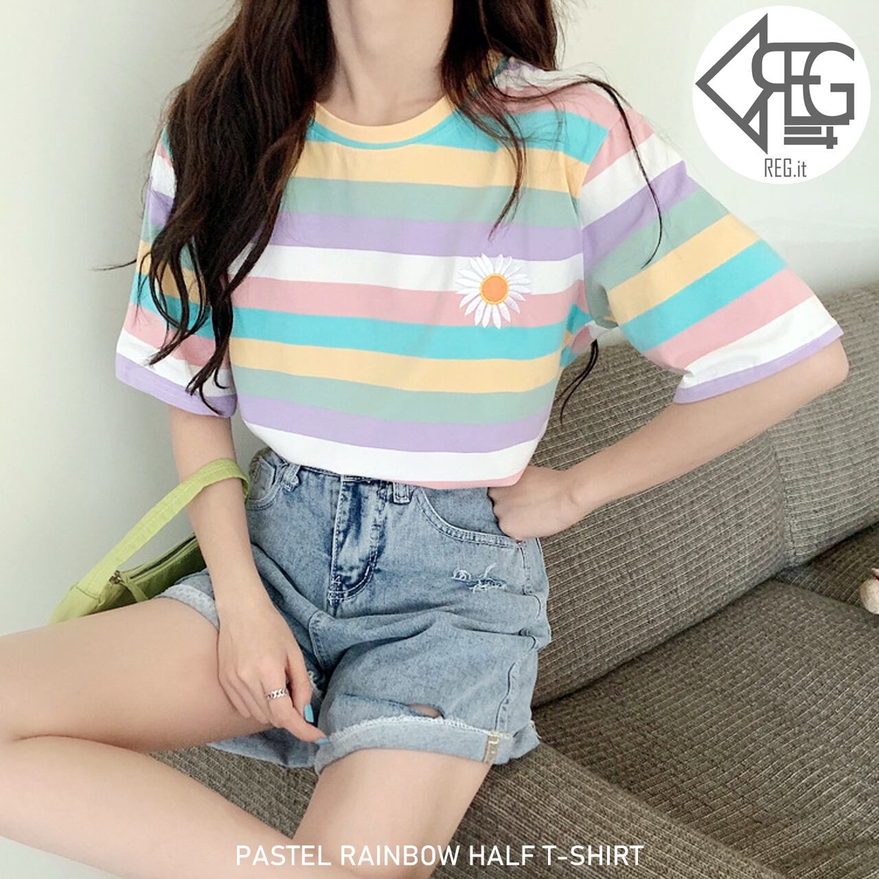 【REGIT】PASTEL RAINBOW HALF T-SHIRT