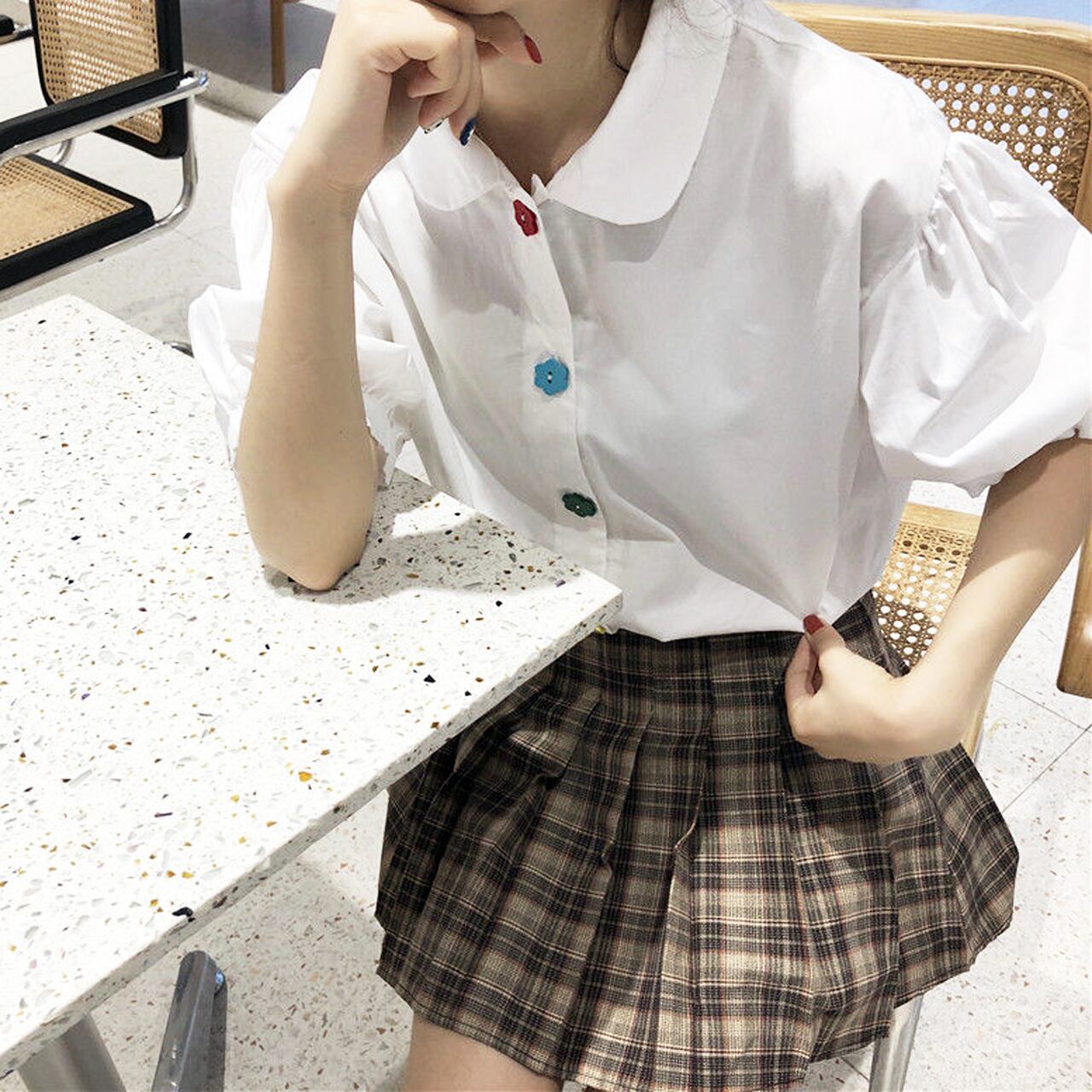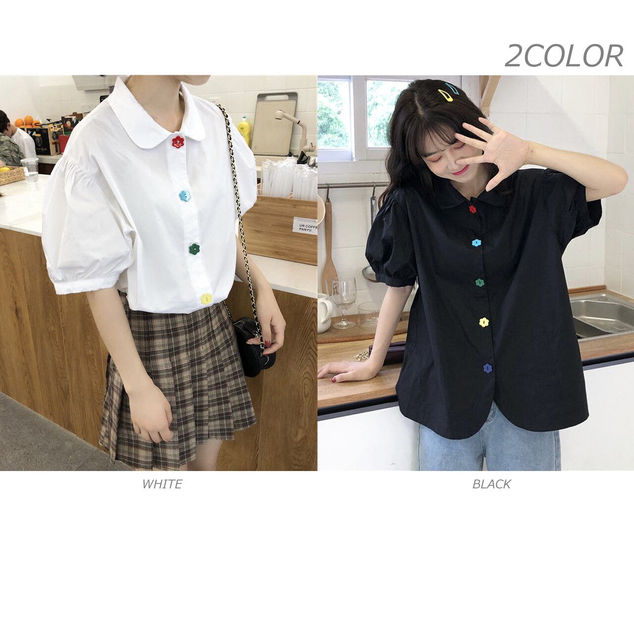 【REGIT】FLOWER BUTTON HALF SHIRT-BLACK S/S 韓国服 トップス ブラウス シャツ 花 森ガール かわいい 綿 プチプラ 10代 20代 着回し 着映え ネット通販 TPB013