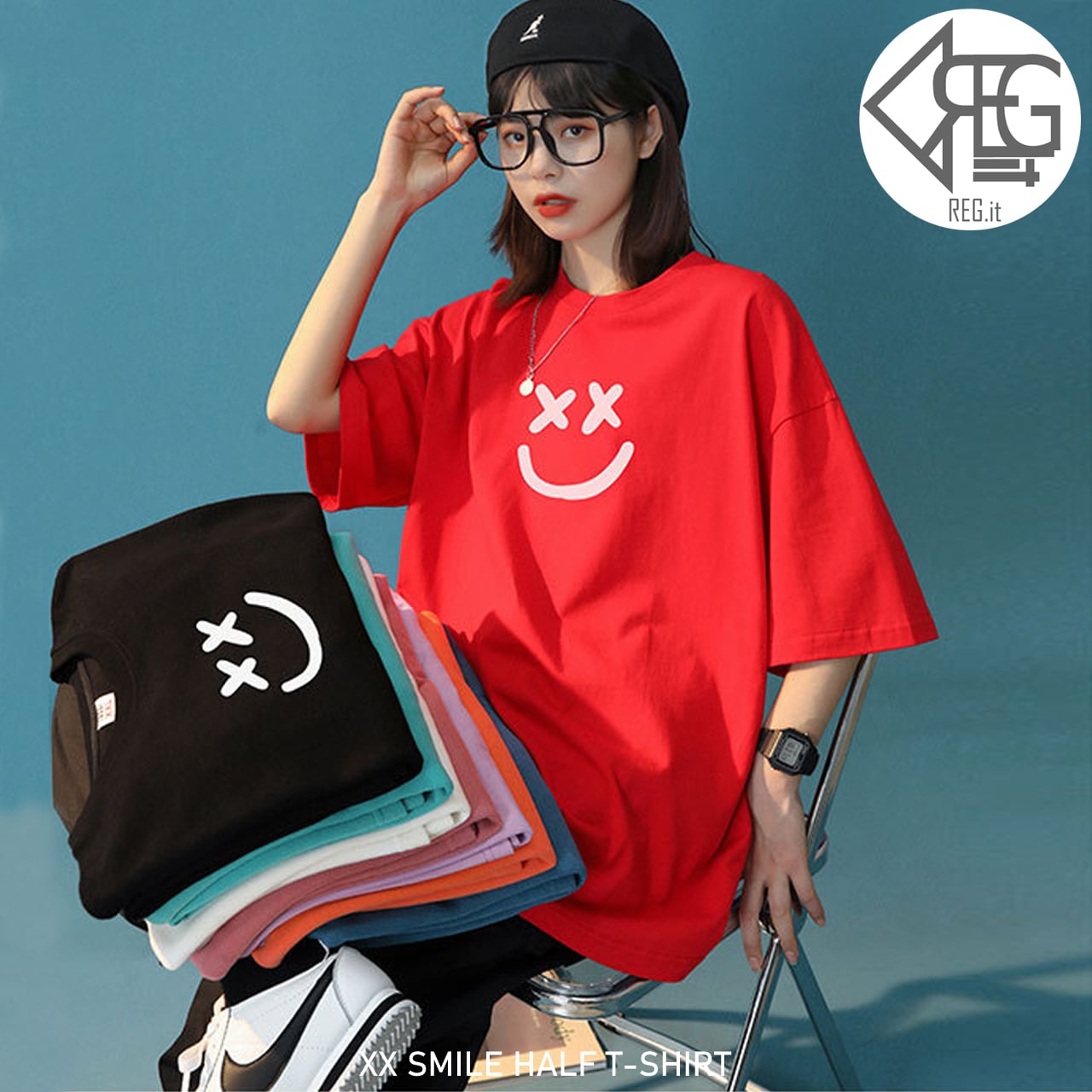 【REGIT】XX SMILE HALF T-SHIRT-RED S/S 韓国服 ユニセックス トップス ストリート系 オーバーサイズ 半袖 Tシャツ 夏 10代 20代 プチプラ 着回し 着映え ネット通販 TPT068