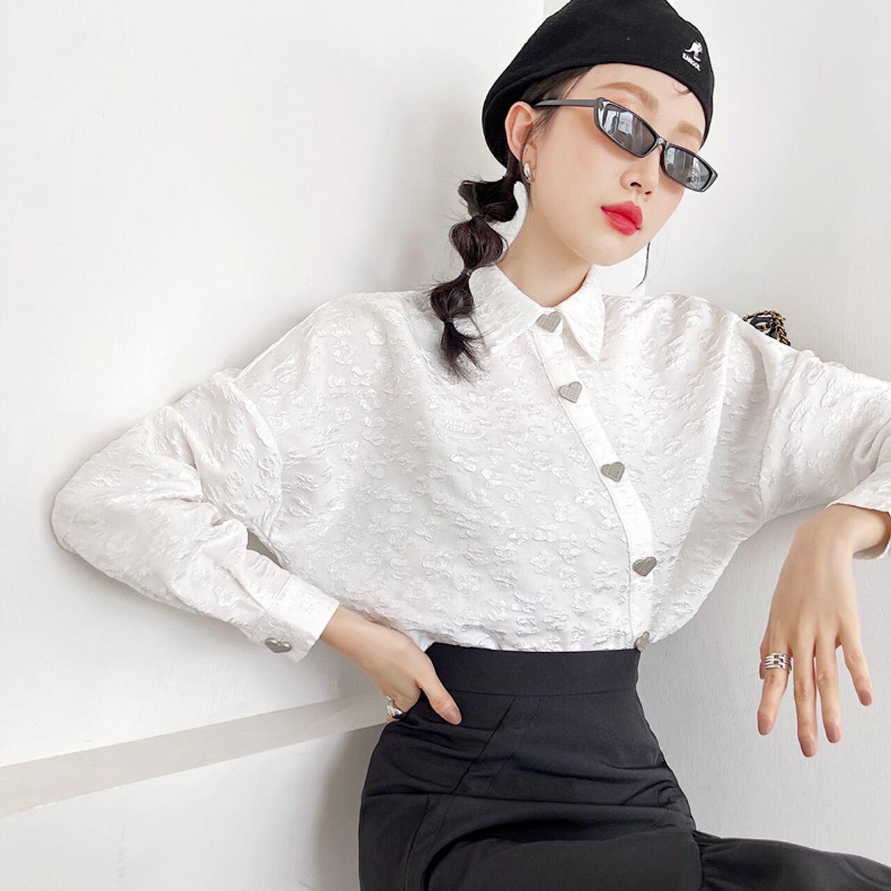 【REGIT】EMBOSS HEART BUTTON BLOUSE 韓国服 トップス ブラウス シャツ 透け感 個性的 プチプラ 着回し 着映え 映える ネット通販 TTB036