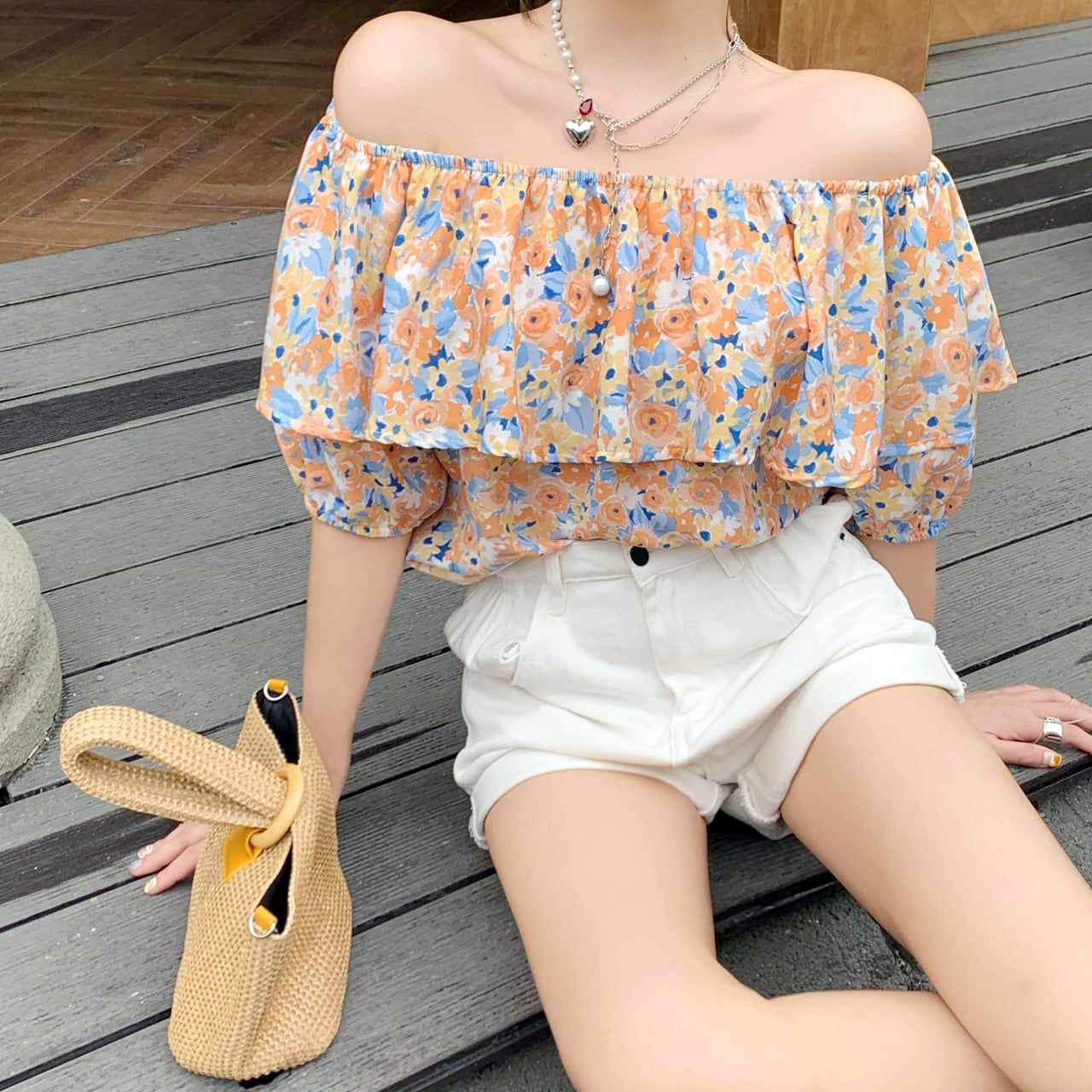 【REGIT】OFF SHOULDER FLOWER T-SHIRT