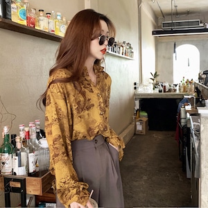 【REGIT】VINTAGE FLOWER BLOUSE-YELLOW 韓国ファッション トップス ブラウス シャツ 古着風 花柄 20代 30代 プチプラ 着回し 着映え ネット通販 TTB042