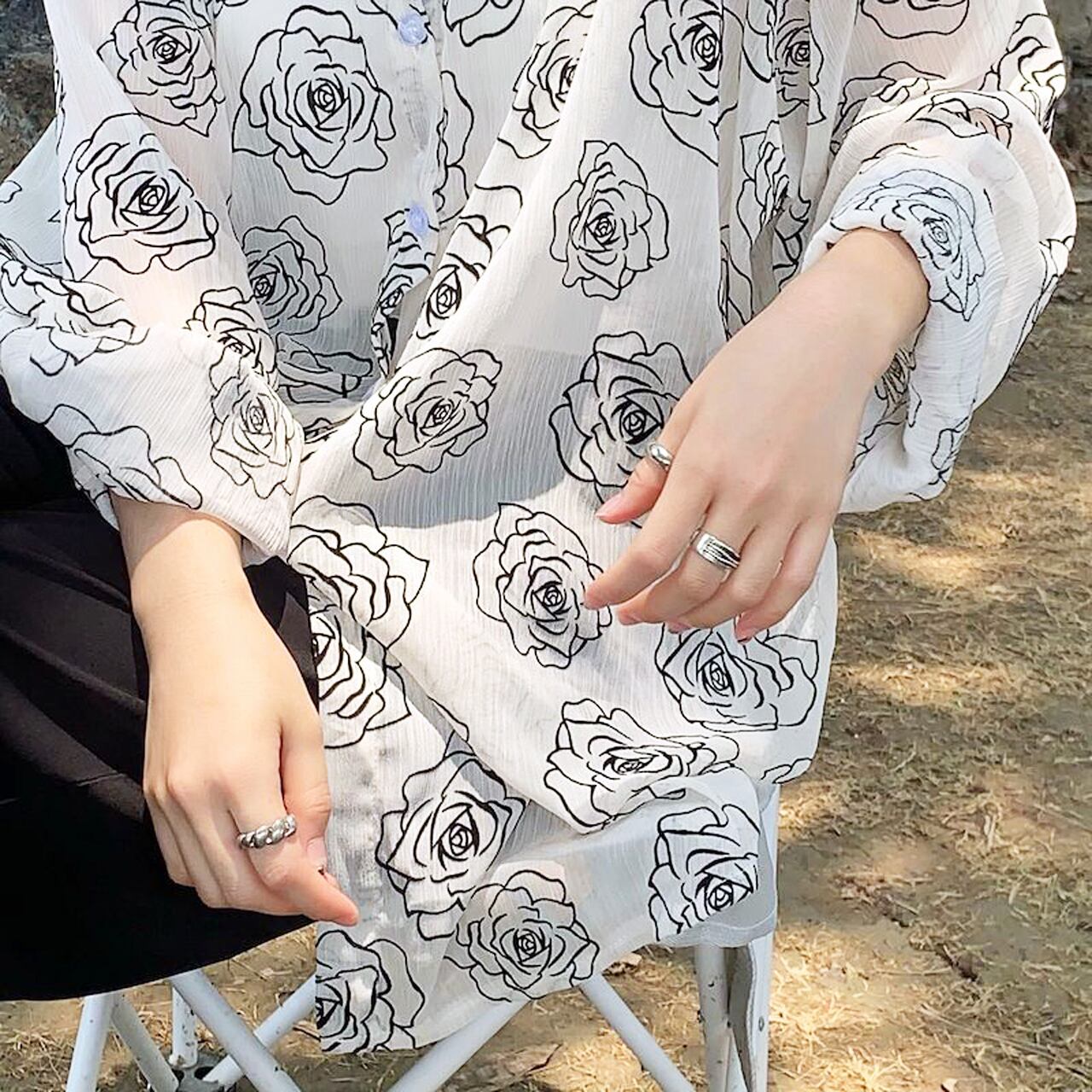 【REGIT】ROSE SEE-THROUGH SHIRT S/S 韓国ファッション トップス シースルー シャツ ブラウス 長袖 バラ 花柄 透け感 羽織シャツ 20代 30代 プチプラ 着回し 着映え ネット通販 TTB044