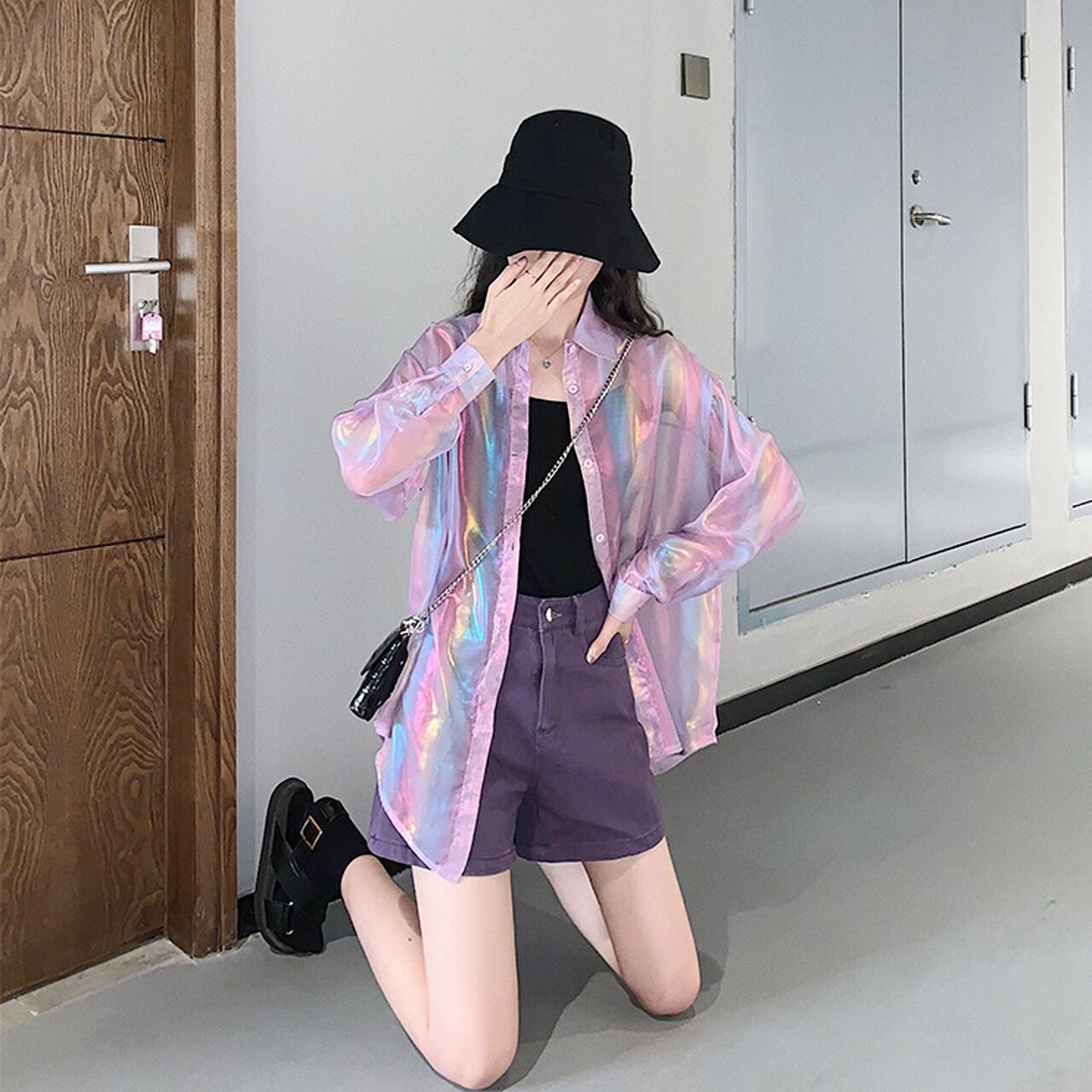 【REGIT】AURORA SEE-THROUGH SHIRT-WHITE S/S 韓国ファッション トップス 長袖 シャツ ブラウス シースルー 透け感 オーロラ 羽織シャツ 個性的 10代 20代 プチプラ 着回し 着映え ネット通販 TTB045